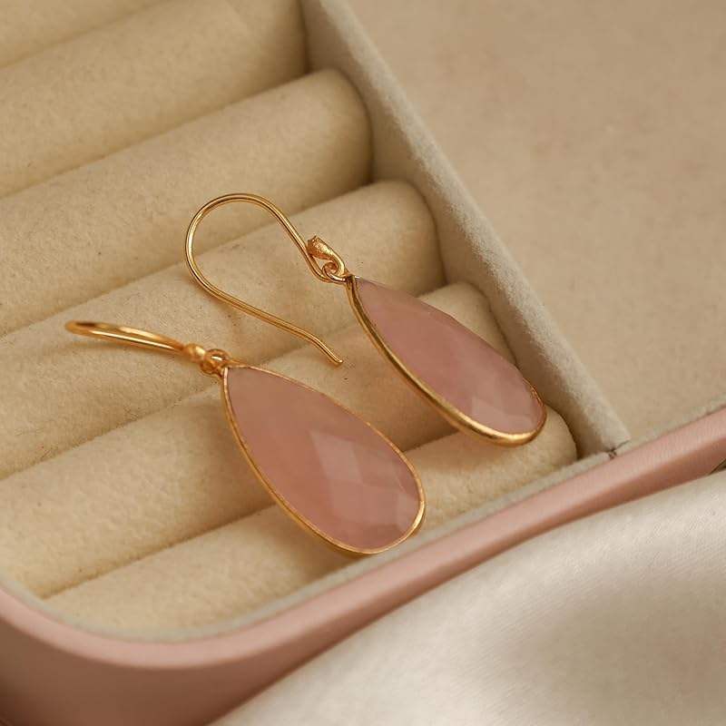 Rose Quartz Bezel-Set Earrings | Gold-Plated Pear Dangle Earrings 15x10mm Bezel-Set Pear Dangles for Elegant Style