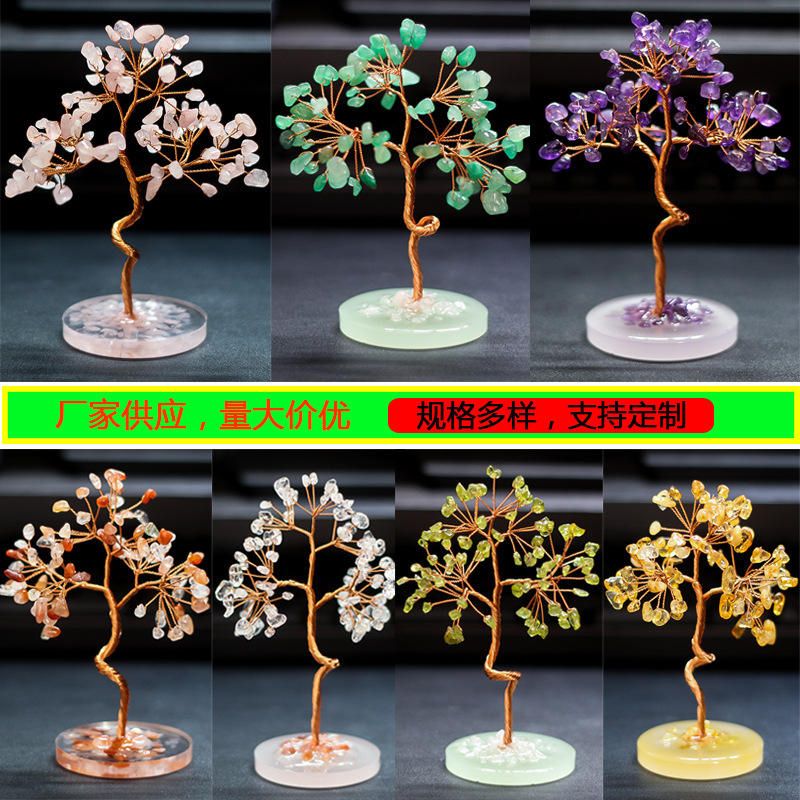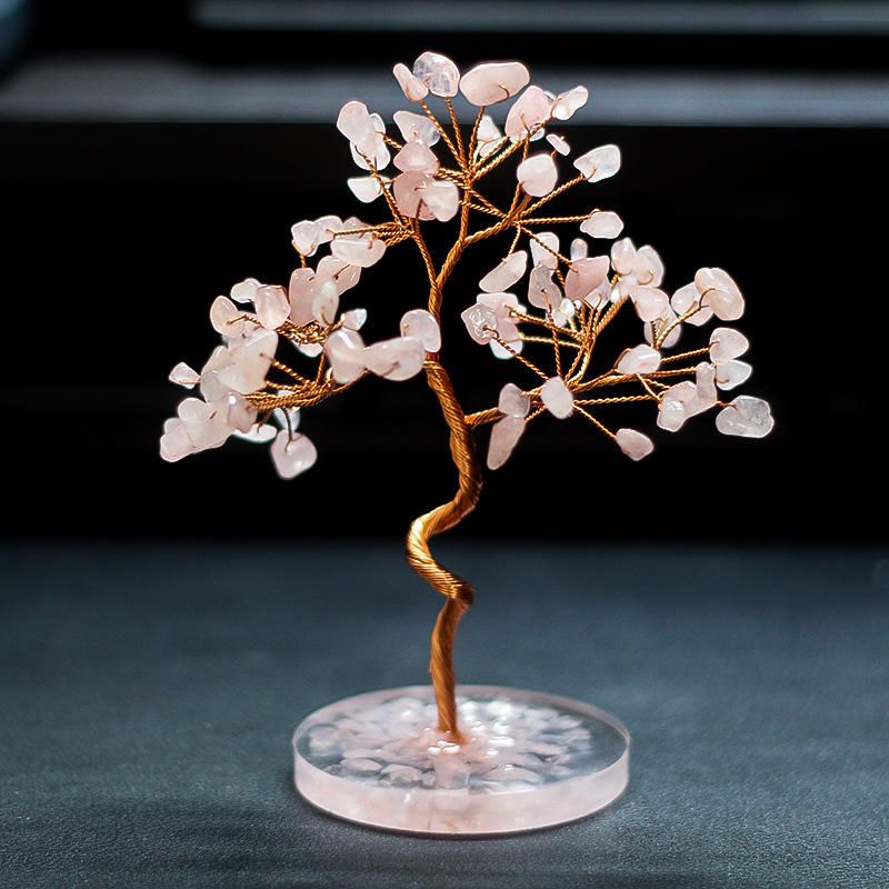 Rose Quartz Crystal Tree Handmade Copper Wire Money Tree Desktop Decoration Home Decor