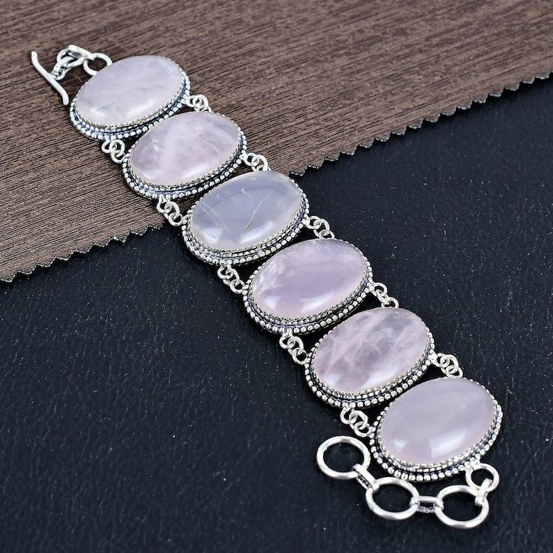 Rose Quartz Gemstone Bracelet 925 Sterling Silver Boho Jewelry Handmade Crystal Bracelet Unique Spiritual Gift For Women