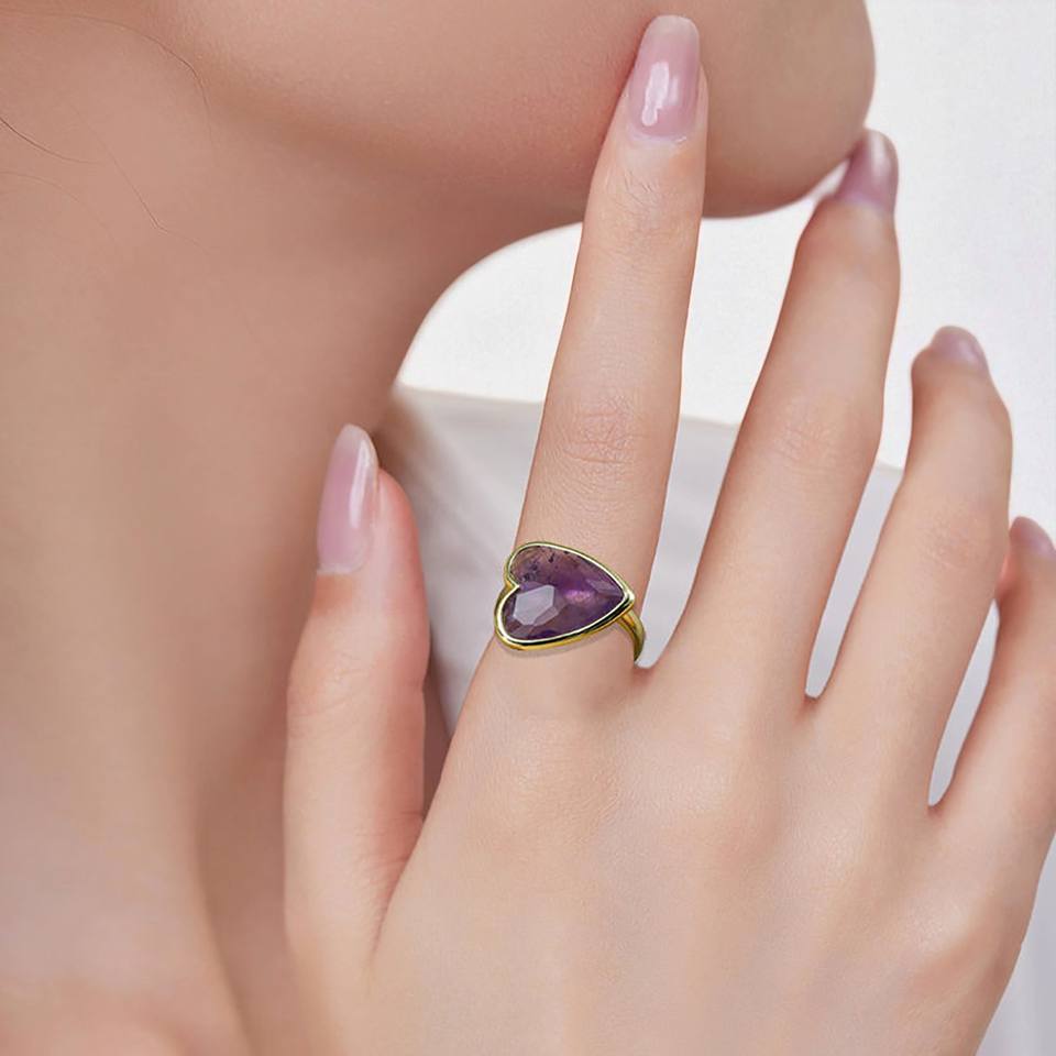 Rose Quartz Heart Chunky Rings - Bezel Gemstone Statement Ring - 925 Silver Plain Band Ring for Women
