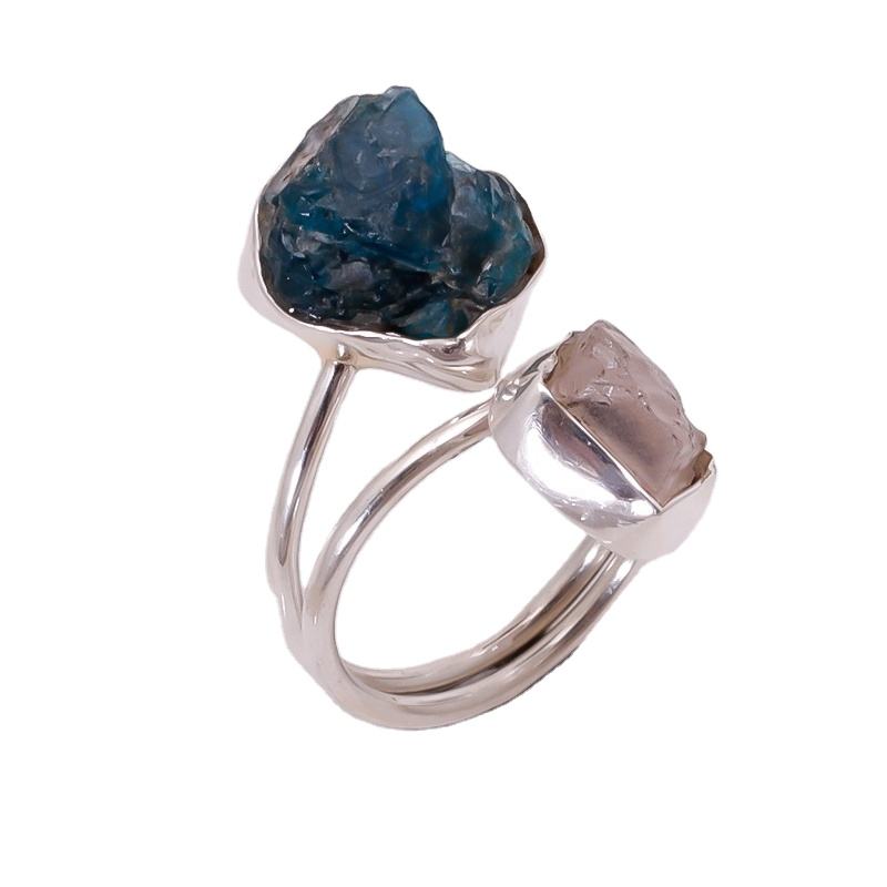 Rose Quartz Neon Apatite Gemstone Ring 925 Sterling Silver Bezel Setting Indian Handmade Unisex Jewelry