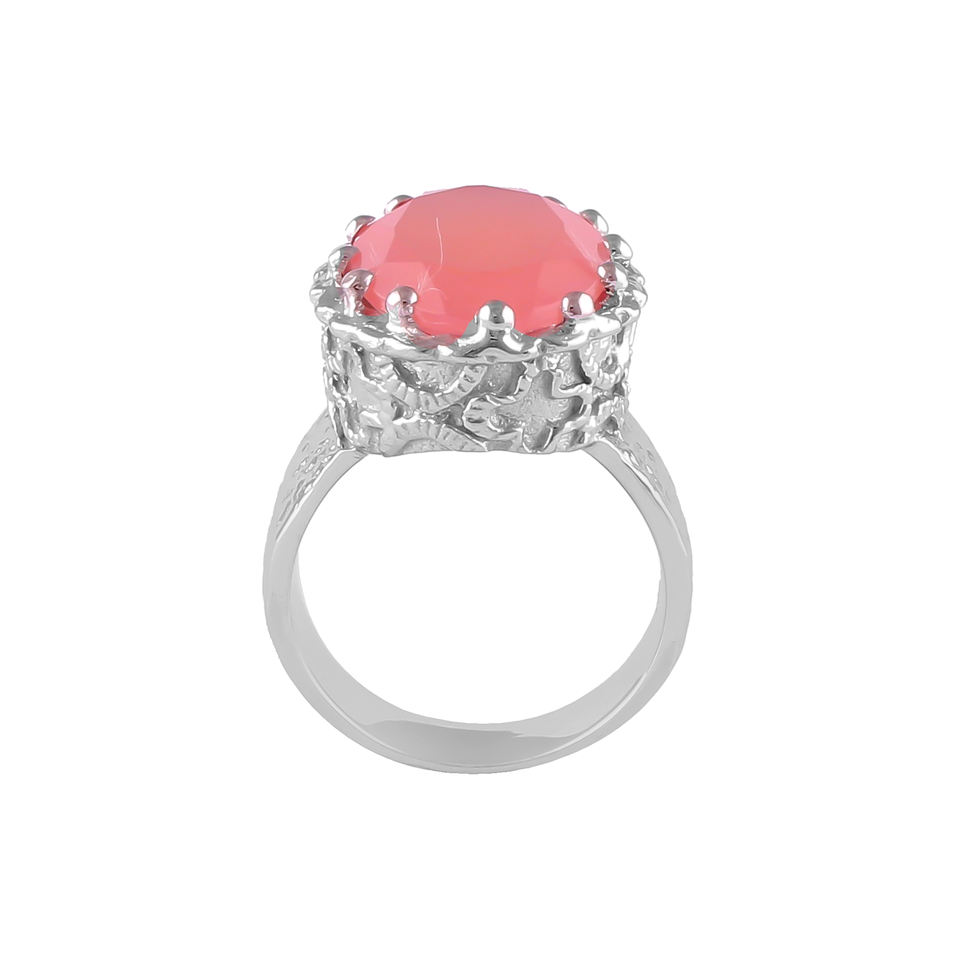 IGI Certified Rose Quartz Solitaire Hammered Ring 925 Sterling Silver with Rose Gold Rhodium Plating Fashionable Titanium Inlay