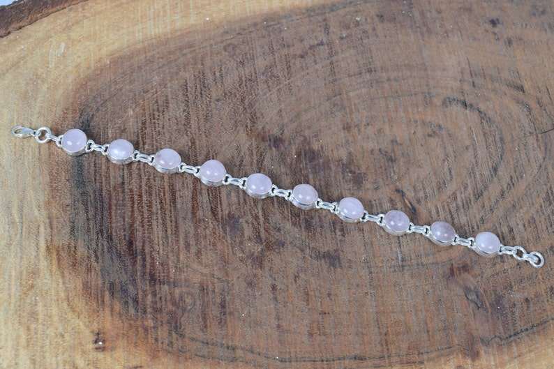 Rose Quartz Sterling Silver Bracelet Adjustable Gemstone Jewelry January Birthstone Handmade Gift For Women