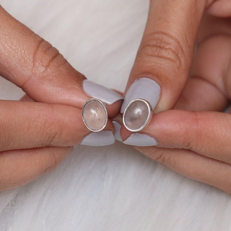 Rose Quartz Stud Earrings 925 Sterling Silver Handmade Studs Earrings for Woman Jewelry Gift Iteam Jewelry for Her