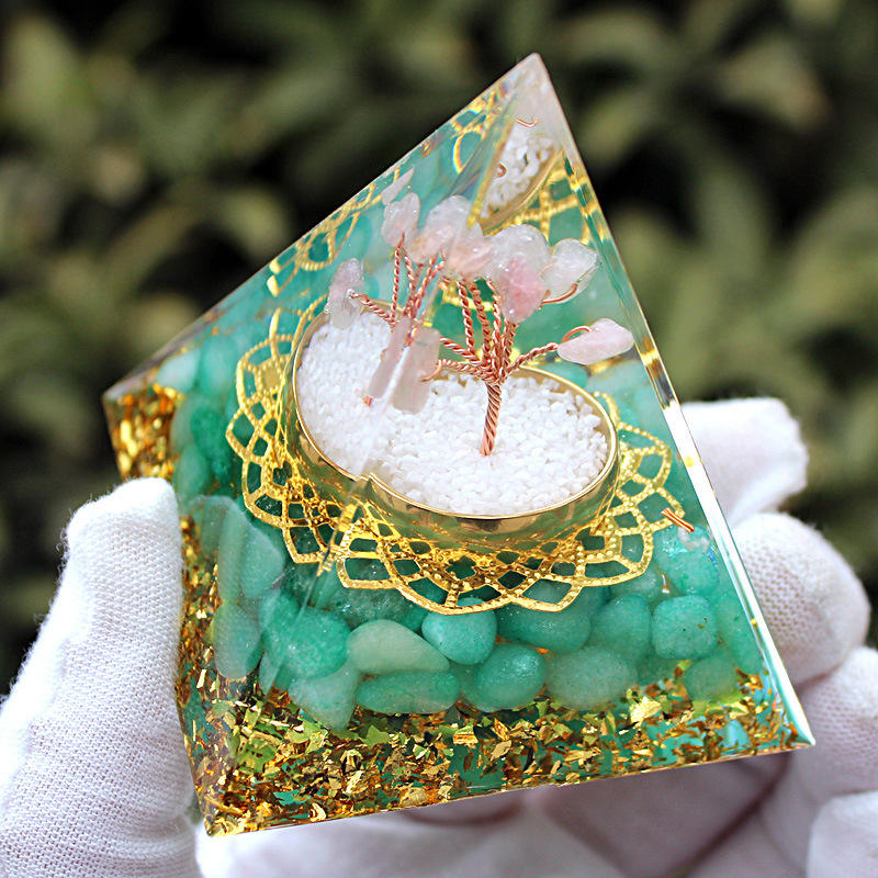 Rose Quartz Tree Crystal Epoxy Pyramid Green Aventurine Home Decor Desktop Ornament Collection Gift