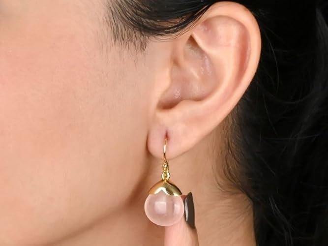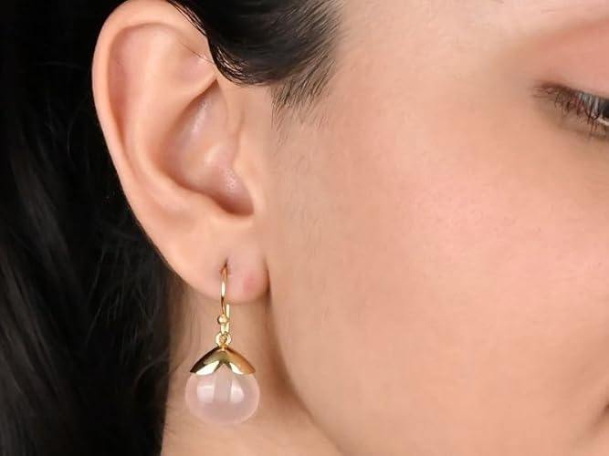 Rose Quartz Tumbled Teardrop Earrings 8-10mm Gold-Capped Dangle with Gold-Plated Hooks Natural Pink Birthstone Jewelry