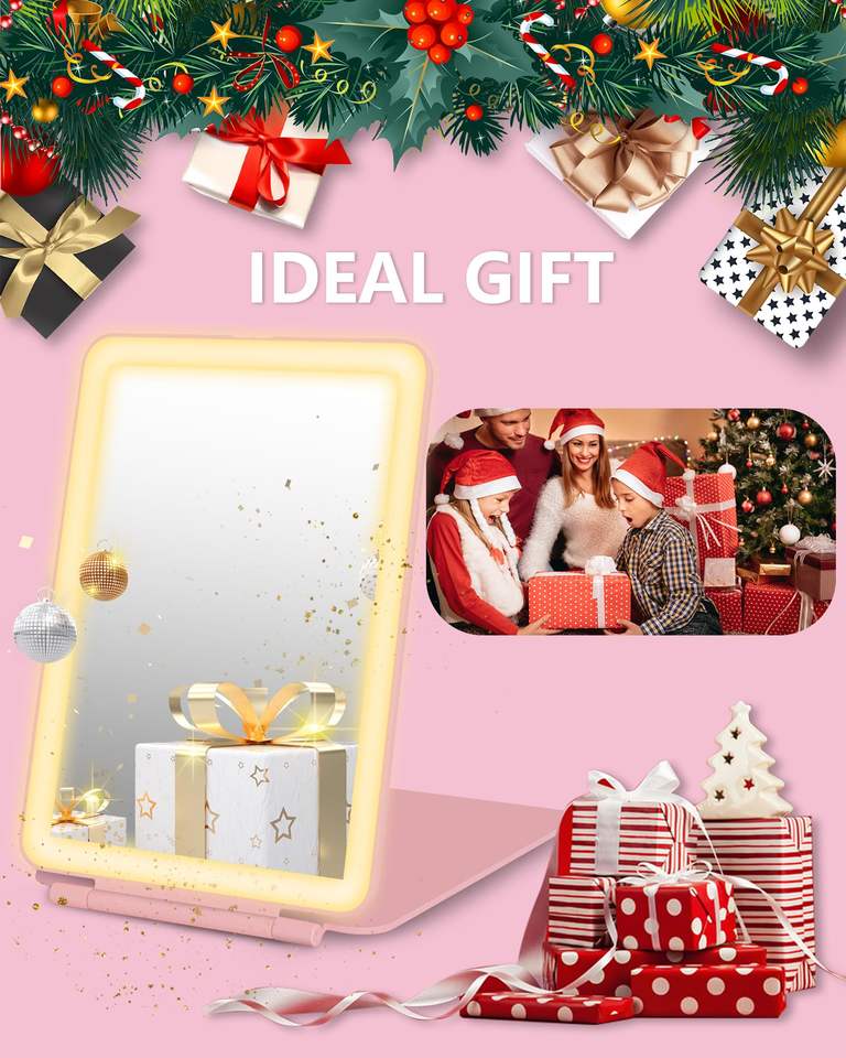 Rose Red Travel Mirror with Light Makeup Mirror Touch Screen 3 Color Lights 72 LEDs Rechargeable Desktop Compact Mirror