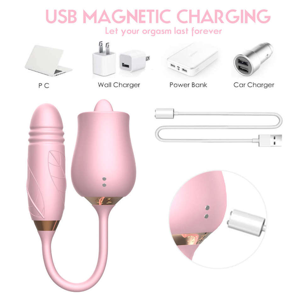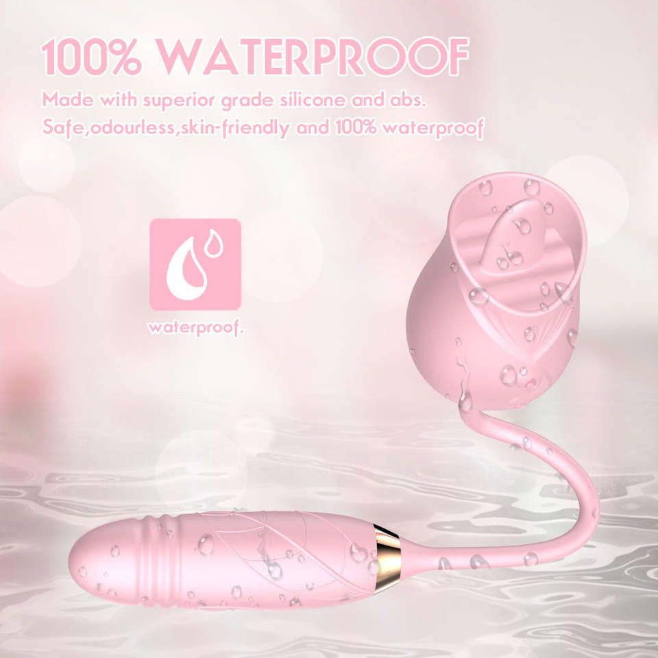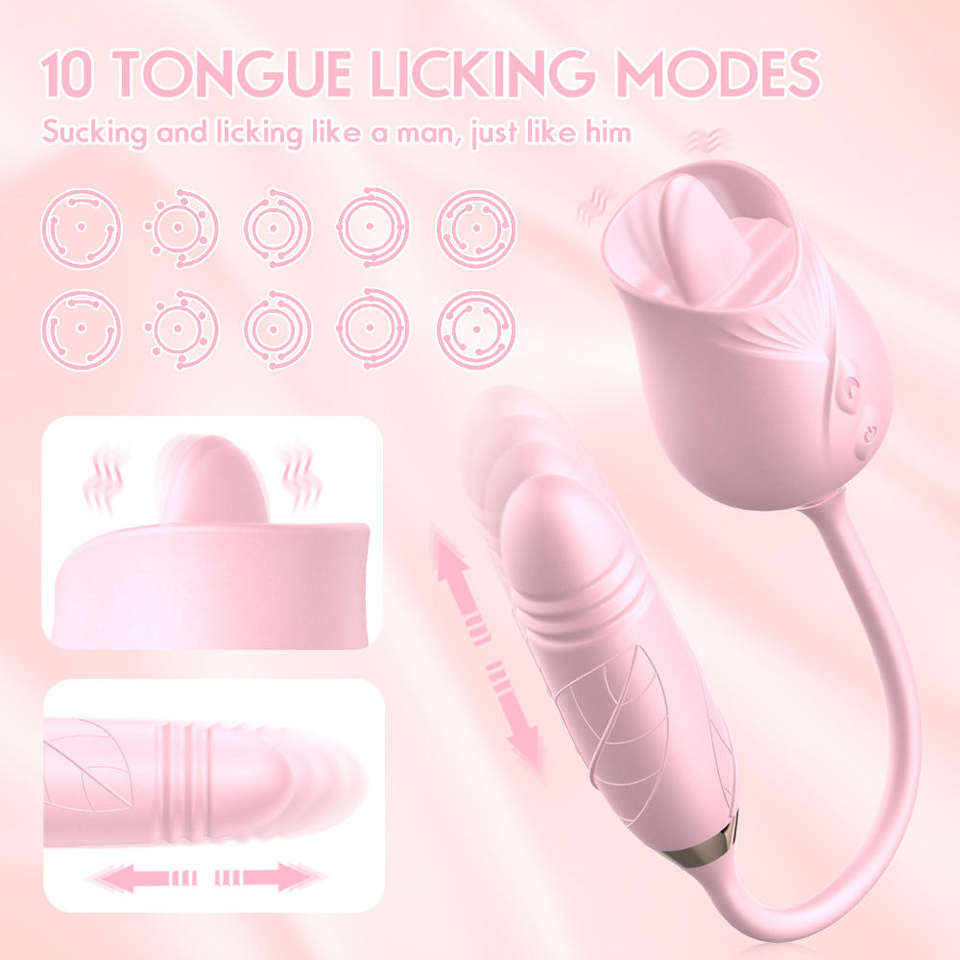 Rose Sex Toys Dildo Vibrator Oral Tongue Shaped Licking With Thrusting Vibrating Kiss G Spot Clitoris Nipple Stimulator Female