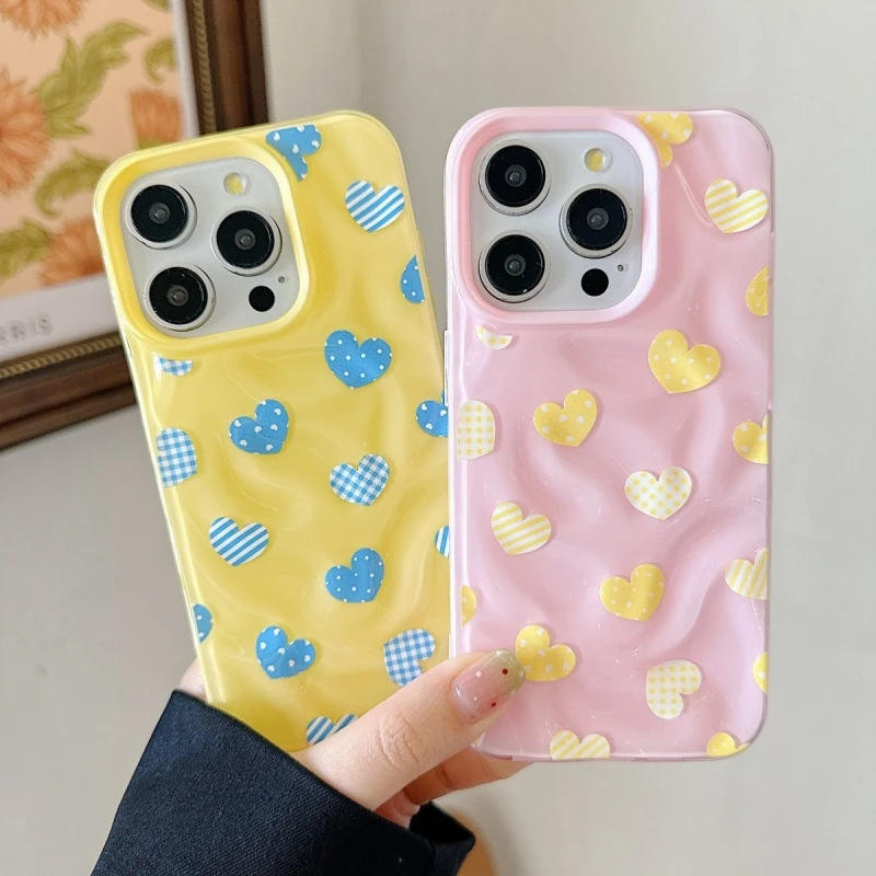 Rose Wrinkle Pattern for iPhone 13/14/15/16/17 Case, Wrinkled Design with Bow, Pink Flower, 3D Plaid Heart, Glossy Soft Cover