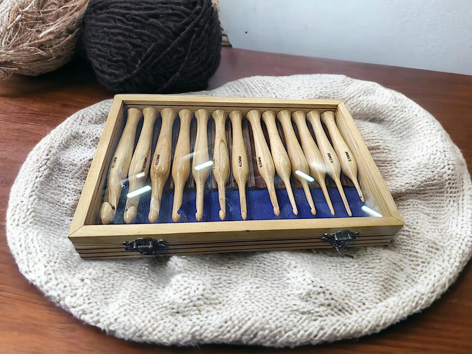 Rosewood Crochet Hook Set with Wooden Case Ergonomic Sizes for Knitting & Crochet Organizer for gifting