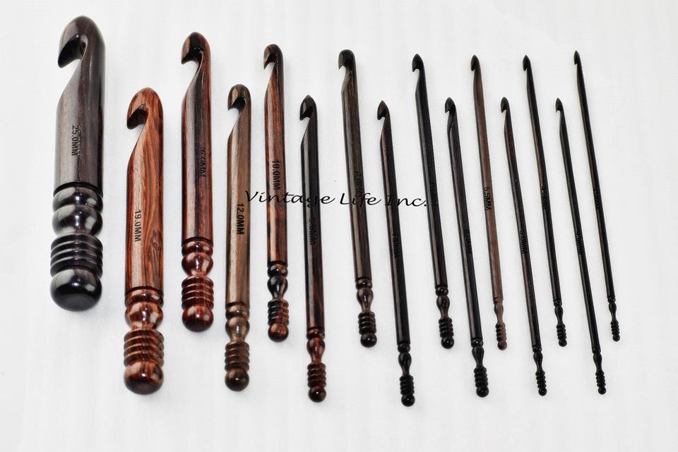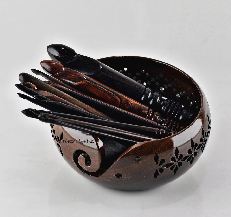 Rosewood Crochet Hooks Set Bowl 15 3.5mm 25mm Natural Hand Turned Ergonomic Sewing Accessory Knitting Crocheting Decor N Utility