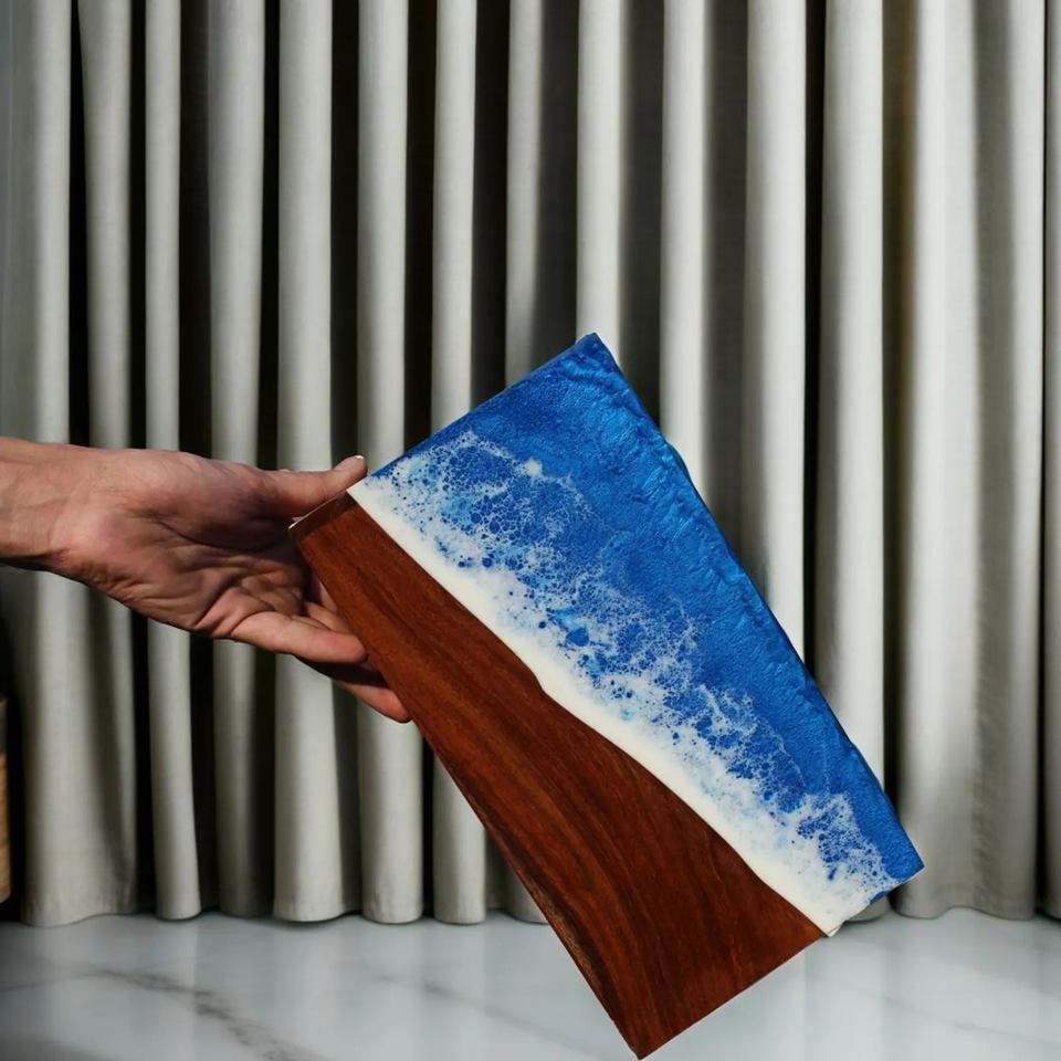 Rosewood & Resin Urn Box Blue Ocean Memorial Keepsake Box Decorative Cremation Urn for Ashes