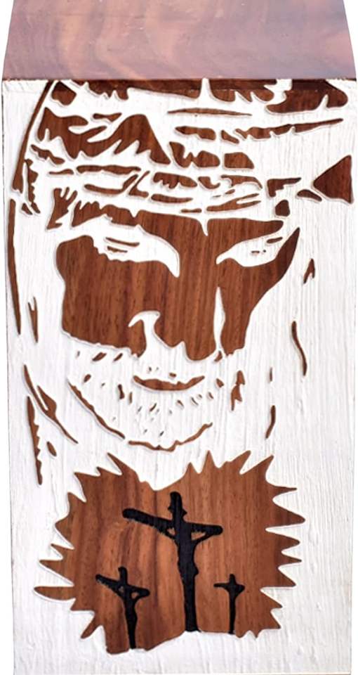 Rosewood Urn for Human Ashes - Cetlic cross And jesus Face Wooden Box - Personalized Cremation Urn for Ashes Handcrafted Large