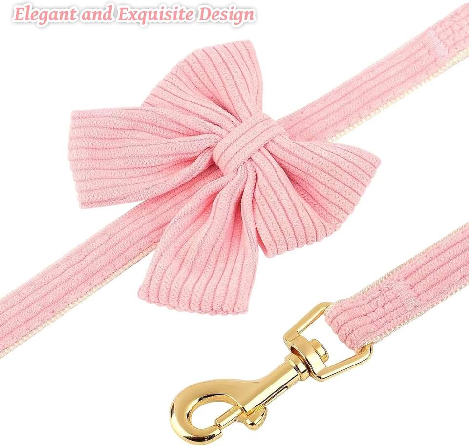 Roseyouth Collar And Leash Set With Bowtie, Cute Girl Dog Collars Metal Buckle Adjustable For Small Medium Puppy Dogs (Pink, S)