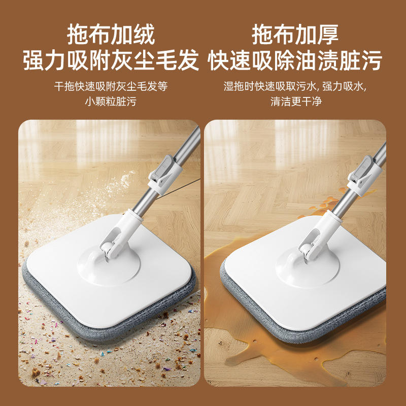 Rotary Mop With Bucket Microfiber Round White Lime 1.2kg For Home Floor Cleaning No Hands Washing Required