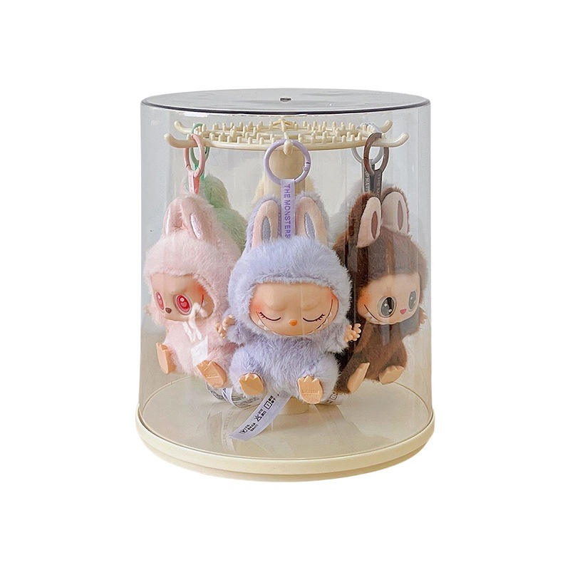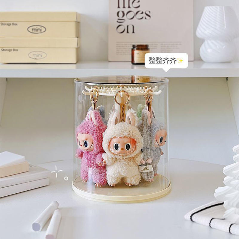 Rotatable Figurine Storage Display Rack Creamy Yellow Creamy White Solid Color Hobby Display Case
