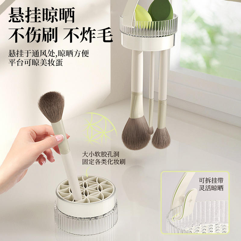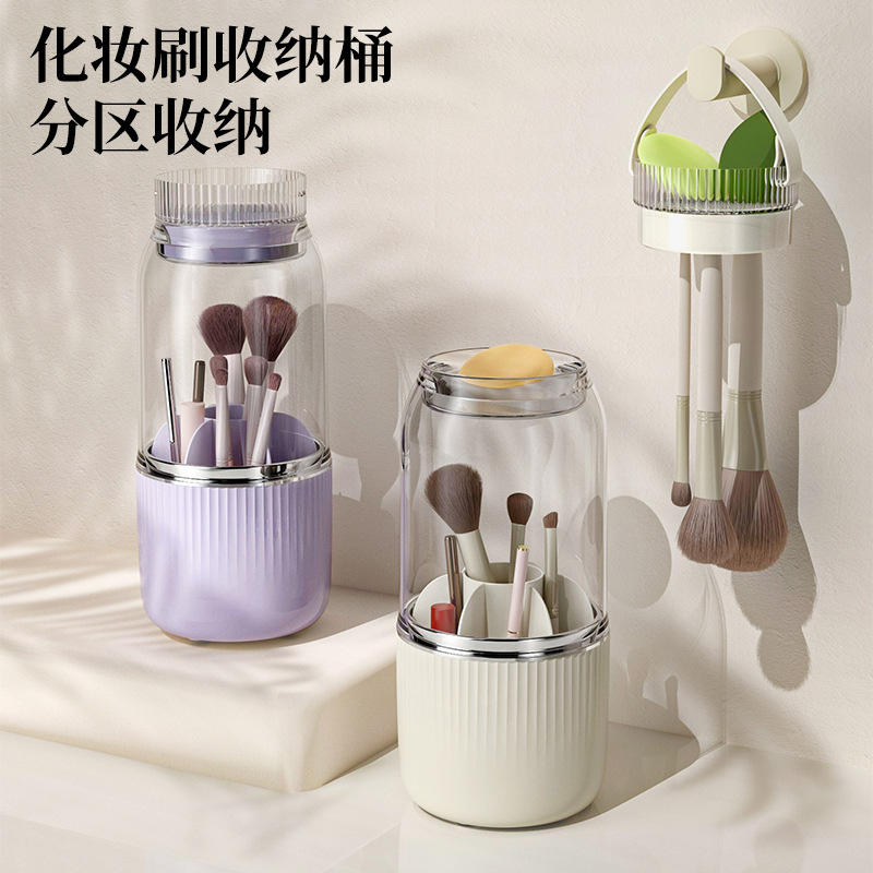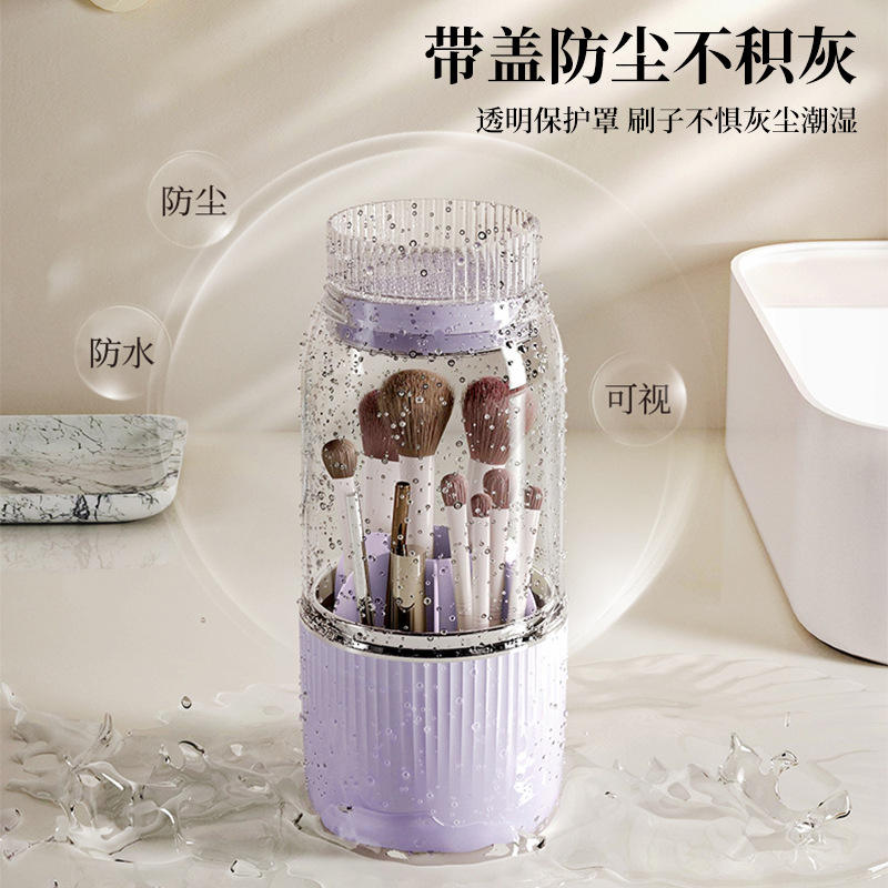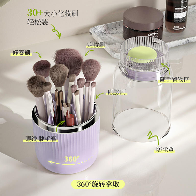 Rotating Cosmetic Storage Box Plastic Makeup Organizer For Desk With Brush Holder And Eyeshadow Tray