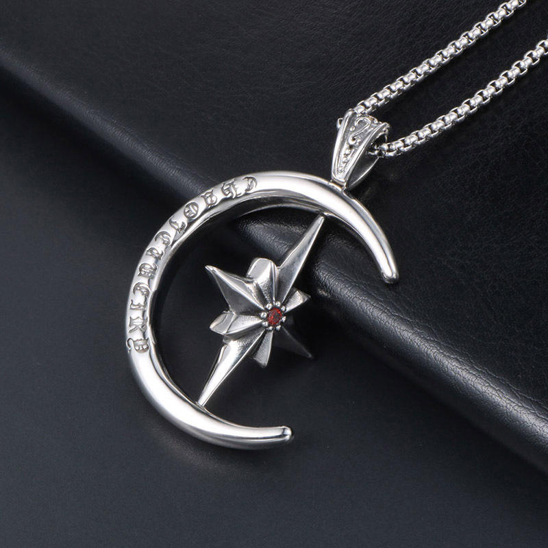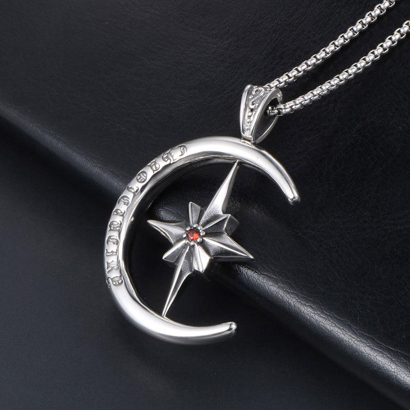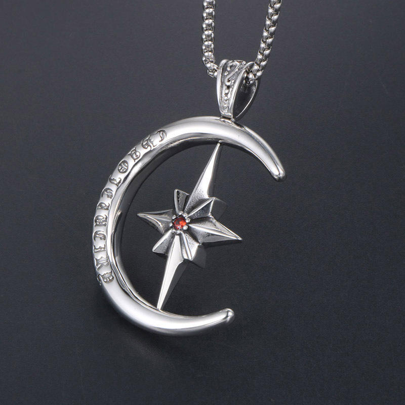 Rotating Eight Pointed Star Ruby Pendant Titanium Steel Necklace For Men Women Gift SP639