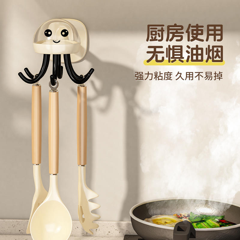 Rotating Hook For Kitchen Spatulas And Shovels Wall Mounted Heavy Duty Adhesive No Drilling Required
