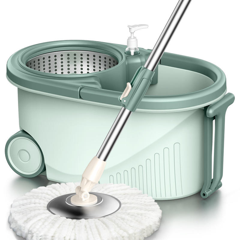 Rotating Mop Bucket Set Microfiber Dual Drive Spin Drying For Home Use Nordic Green Rectangle With Metal Basket