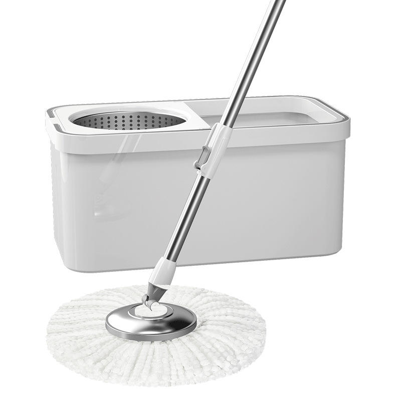 Rotating Mop With Bucket Microfiber Round White Automatic Floor Cleaner Hands Free Cleaning Tool