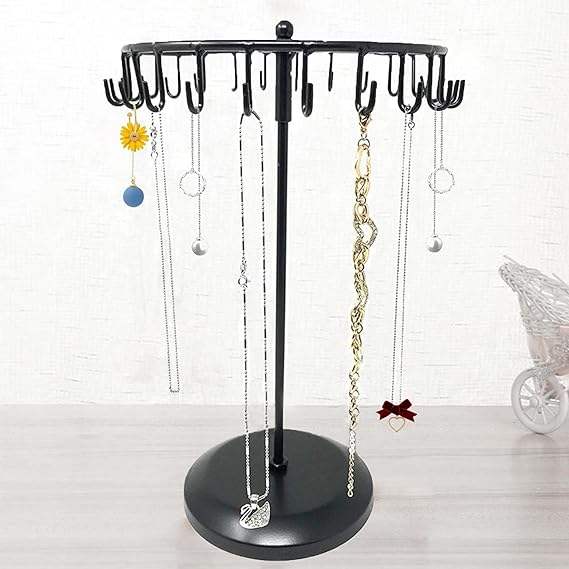 Rotating Necklace Holder Jewelry Organizer Display Stand 14-Inch with 23 Hooks Black, Short-black, 8.27*5.9*13.8inch