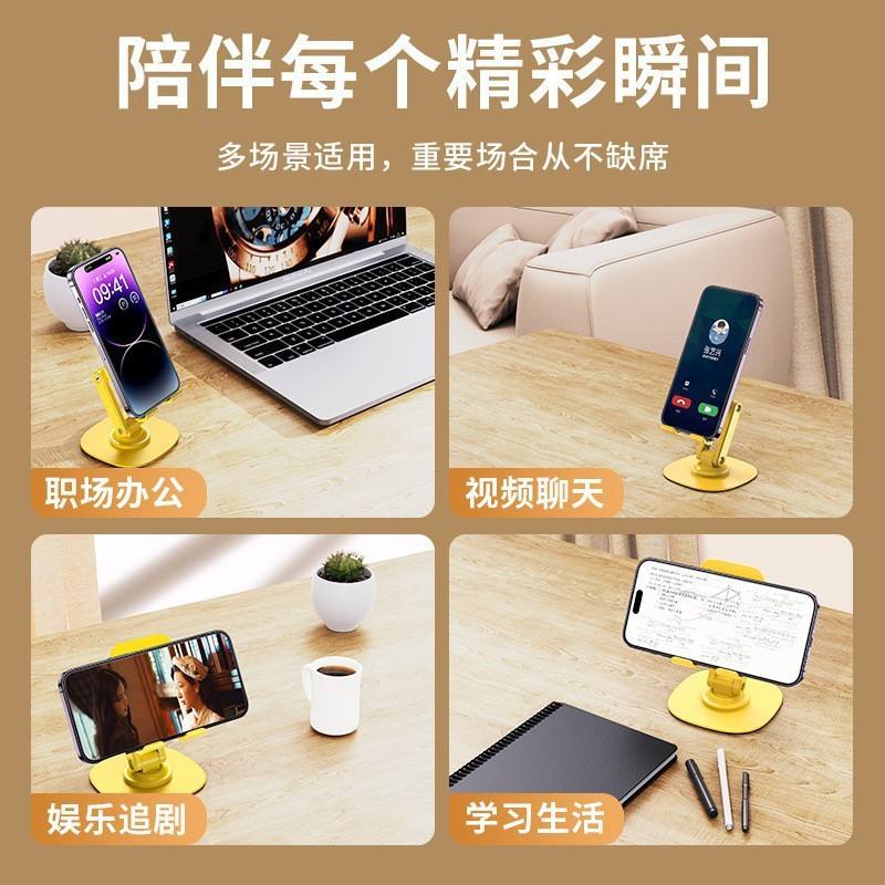 Rotating Phone Holder Foldable Desktop Stand Yellow Alloy Dual Axis Support For Desk Use