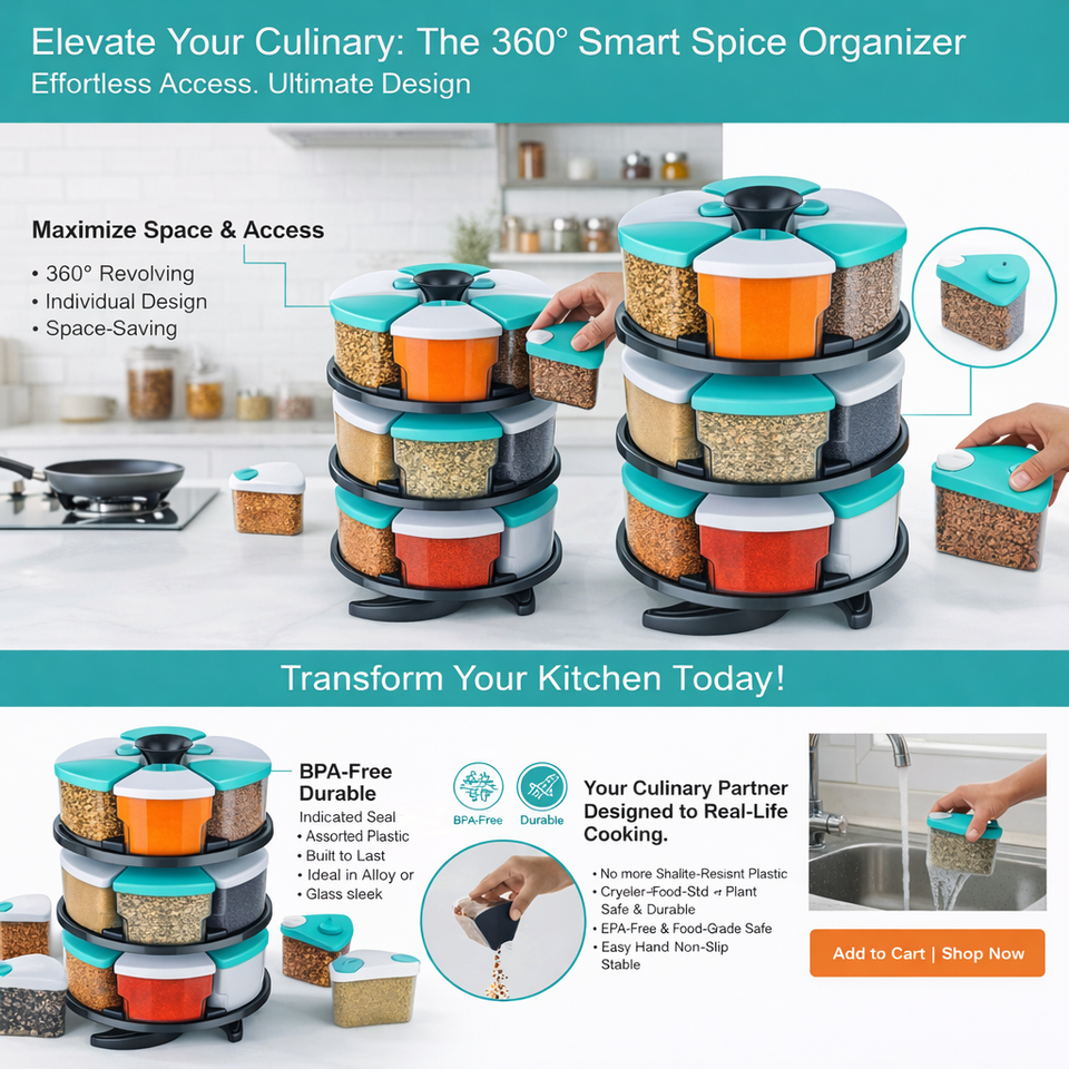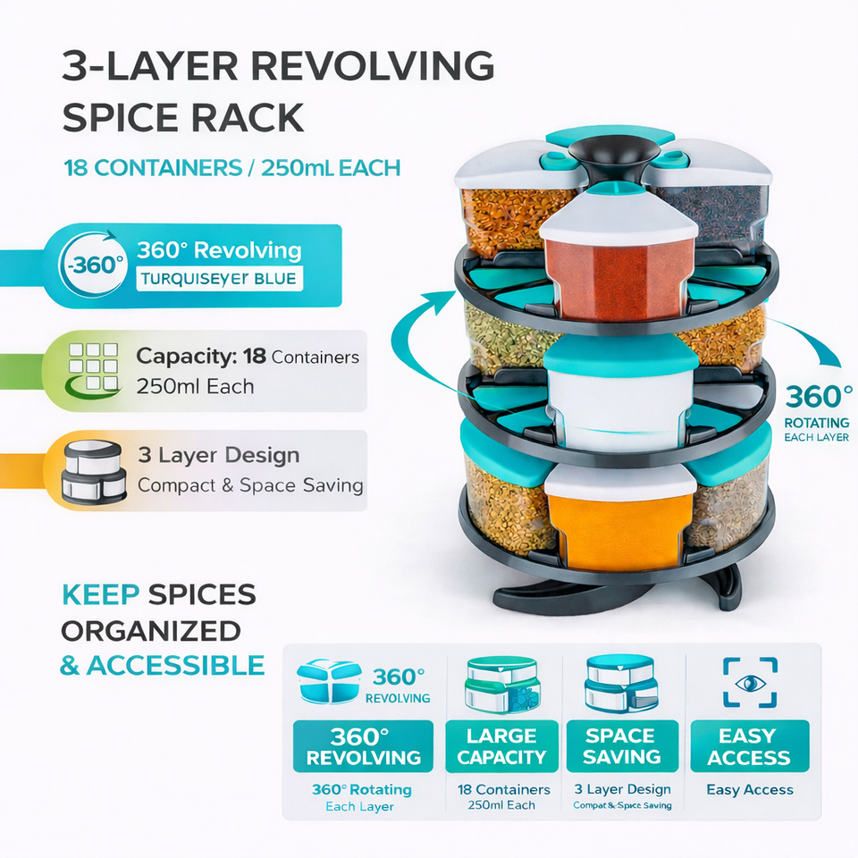 Rotating Spice Rack Organizer for Kitchen | 3-Tier 360° Rotatable Spice Rack with Storage Containers