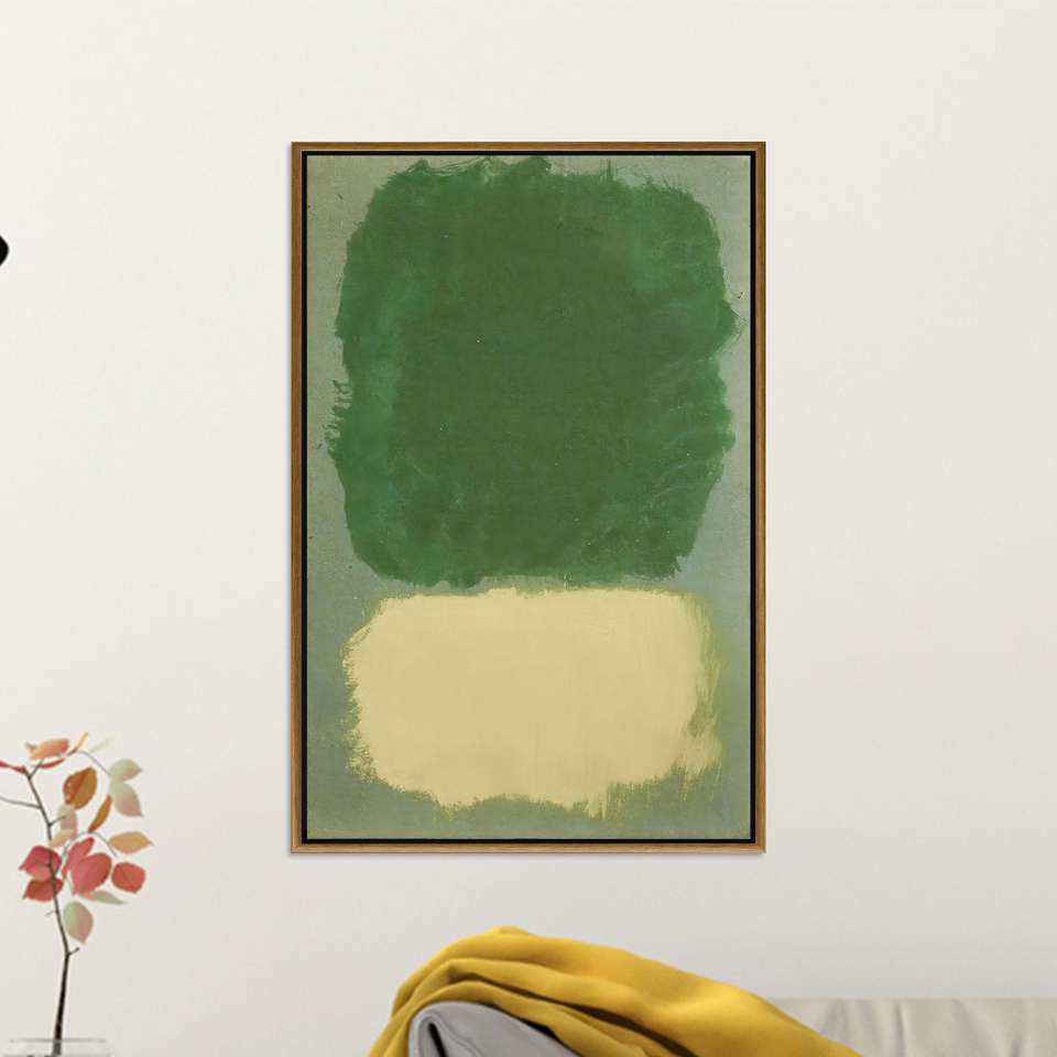 Rothko-Inspired Green & Yellow Printed Abstract Canvas Art,GOLD FRAMED CANVAS