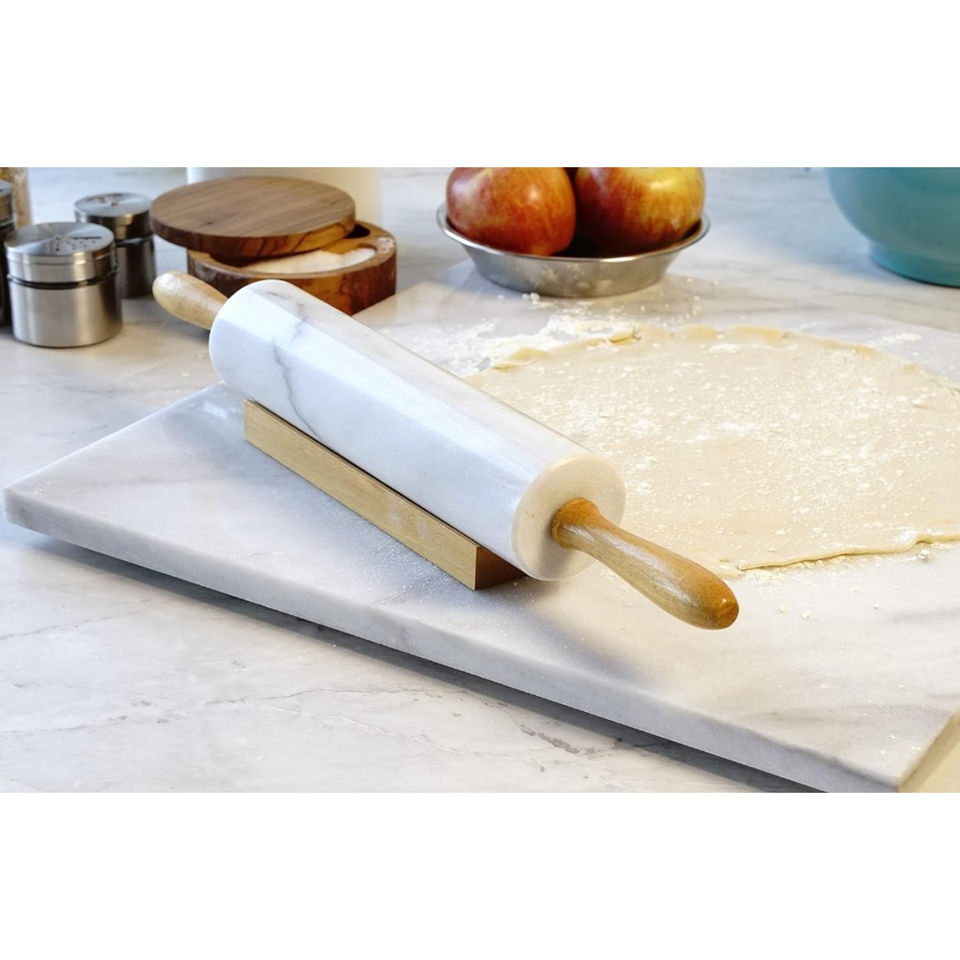 Roti Rolling Pin in Marble and Wood with Large Size and Marvelous Design Perfect for Chapati and Kitchenware Use