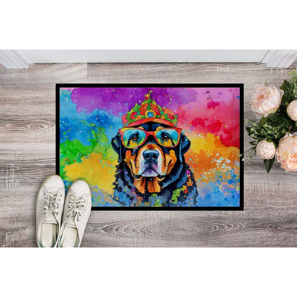 Rottweiler Hippie Dawg Doormat Non Slip Washable Low Pile 24H X 36W Indoor Outdoor Front Door Mat for Entryway