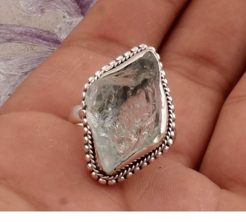 Rough Aquamarine Gemstone Ring in 925 Sterling Silver Sky Blue Color Handmade Ring Gift for Her December Birthstone
