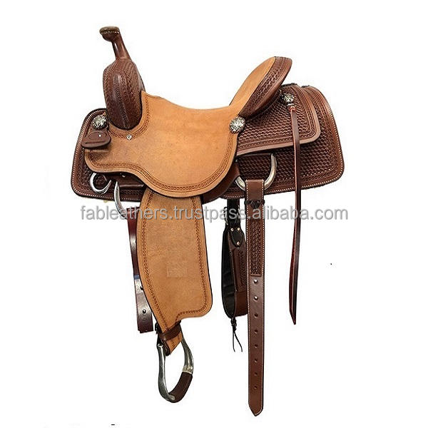 Rough Out Western All Around Horse Saddle Handmade with Genuine Leather Best for Riding Racing Roping Ranching with Tack Set