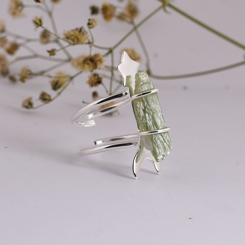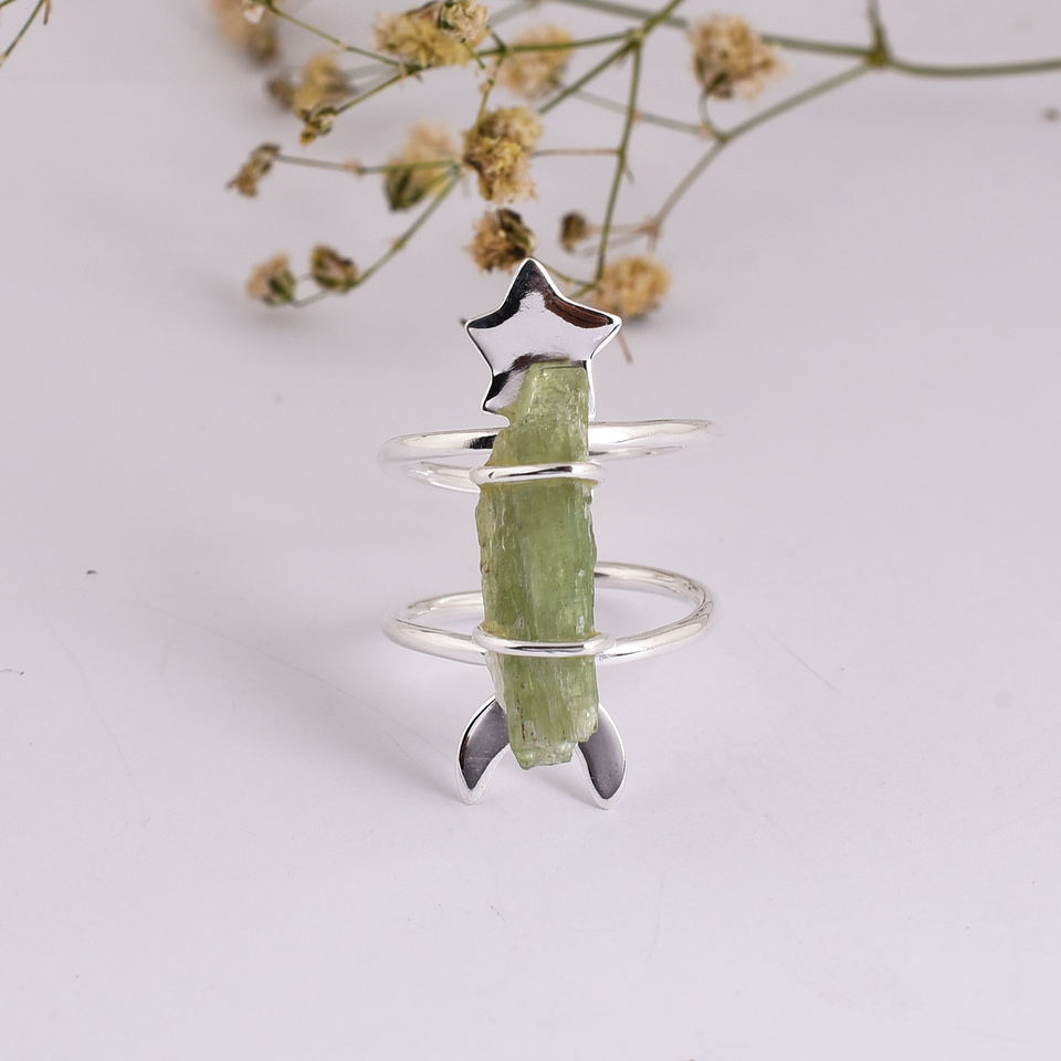 Rough Peridot Gemstone Ring 925 Sterling Silver Ring Trendy Claw Technology Fashionable Ring For Women.