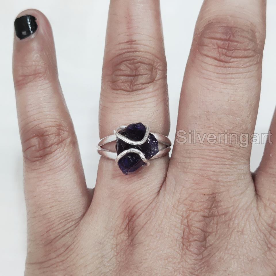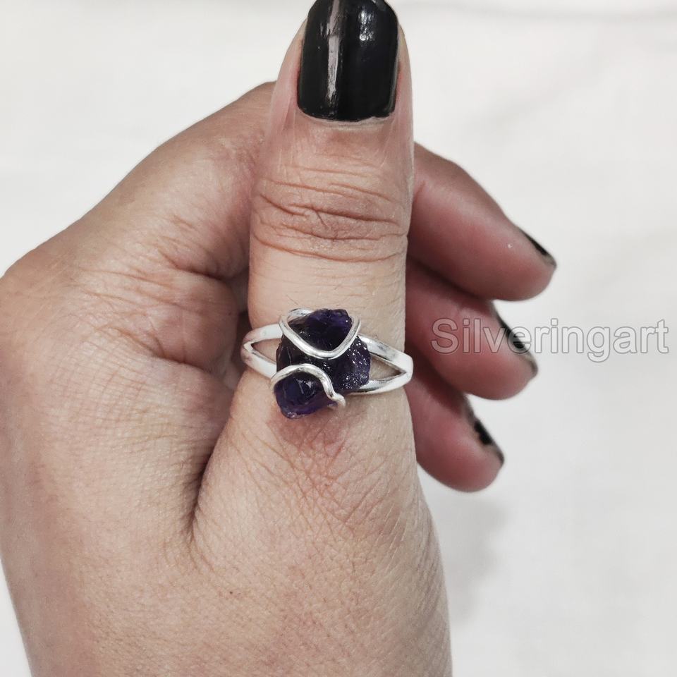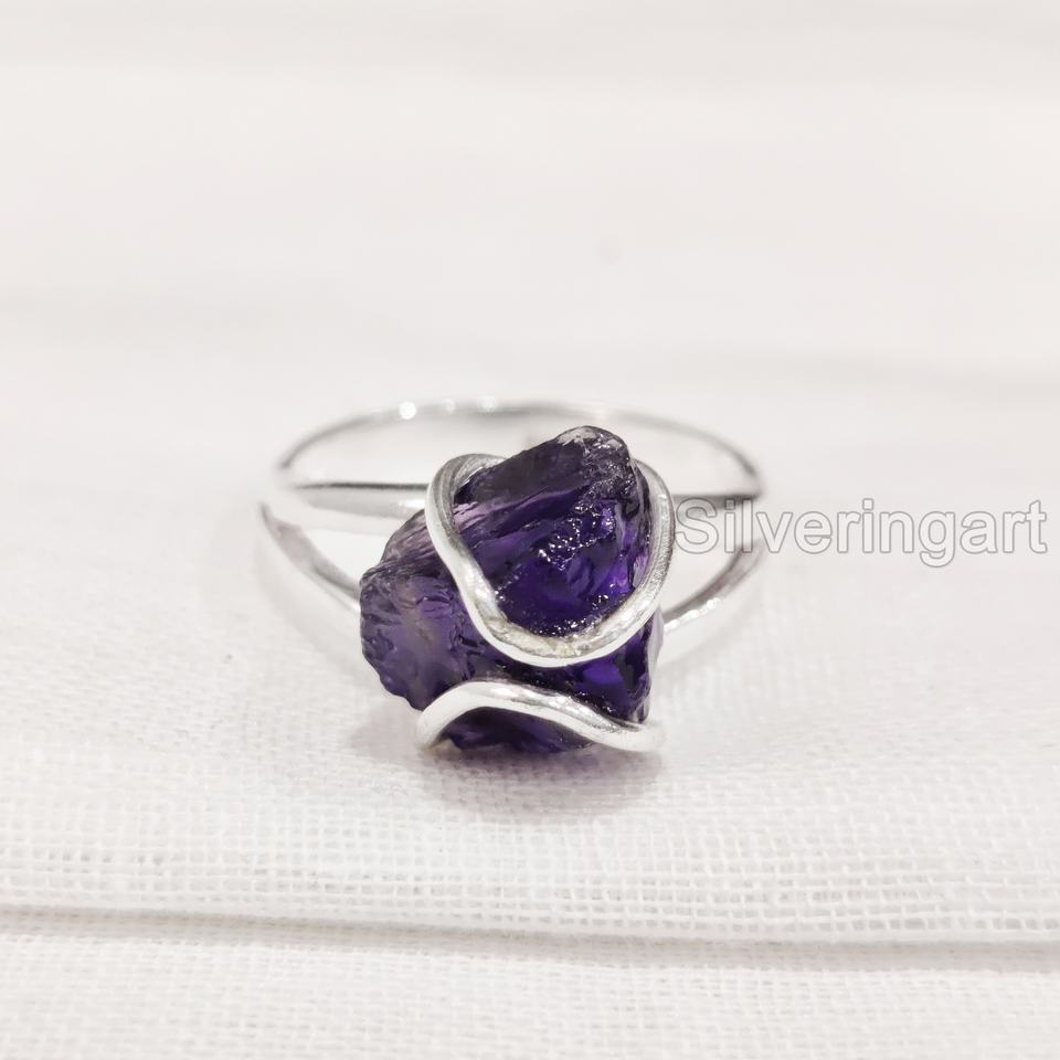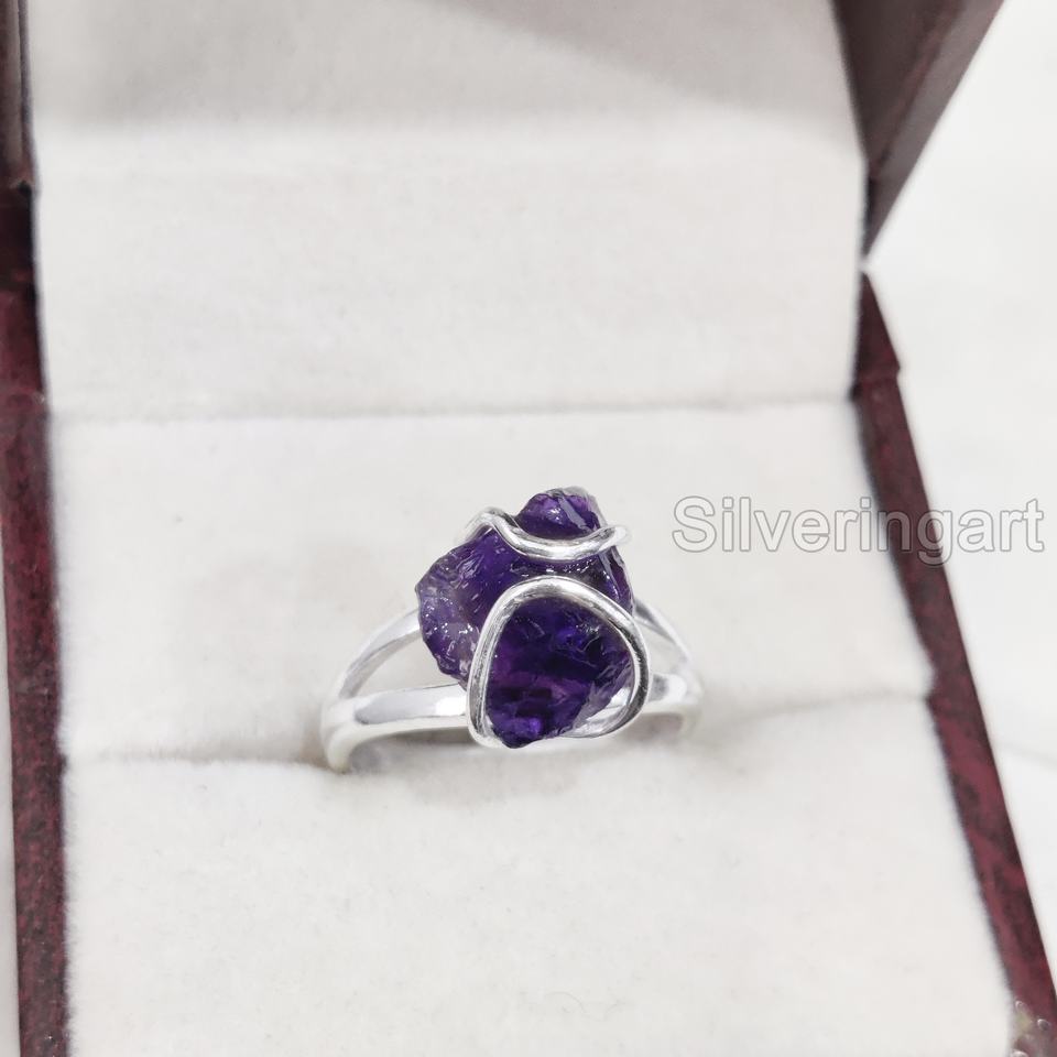 Rough Stone Jewelry Women's Ring Natural Raw Amethyst Gemstone February Birthstone Wire Band Christmas 925 Sterling Silver Ring