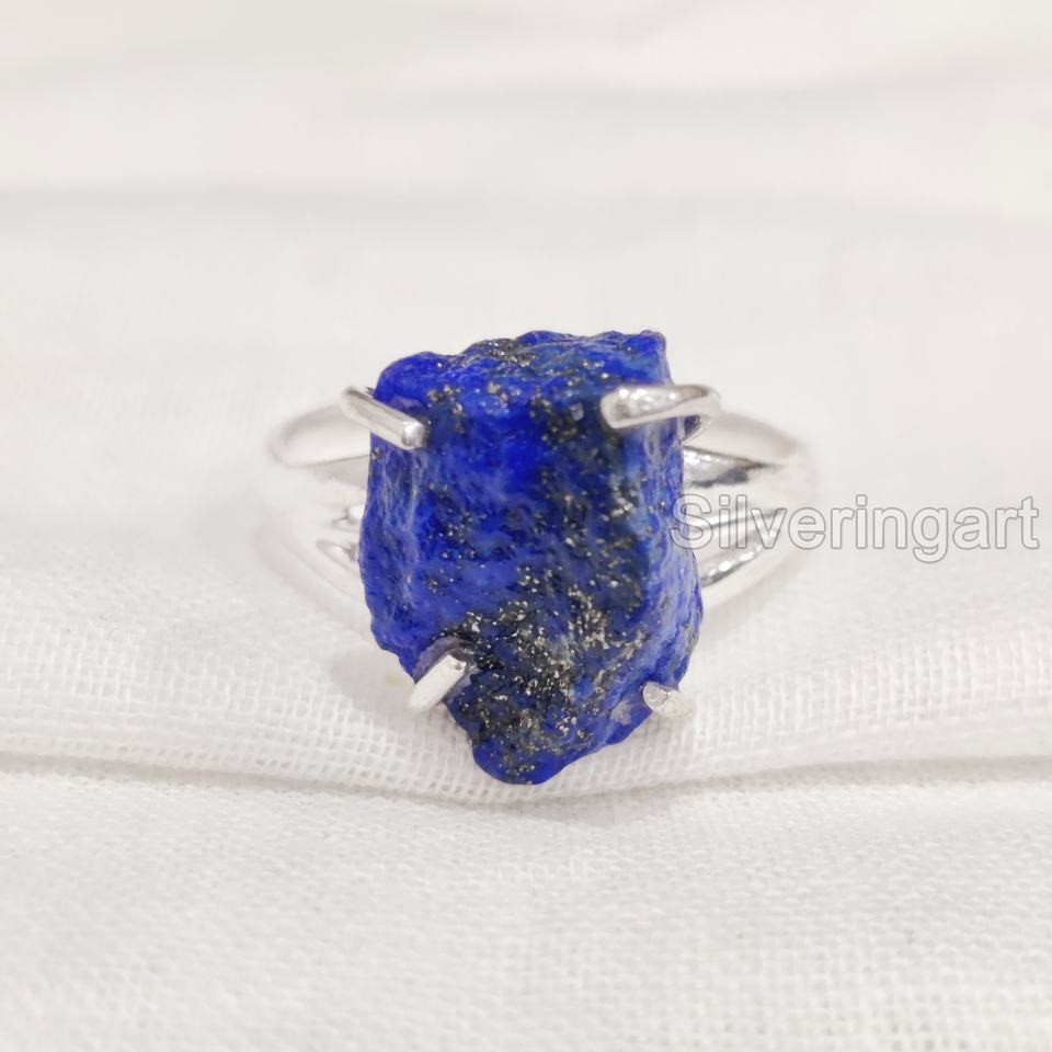 Rough Stone Jewelry Women's Ring Natural Raw Lapis Lazuli Gemstone Boho Gypsy Ring Christmas Statement 925 Sterling Silver Ring