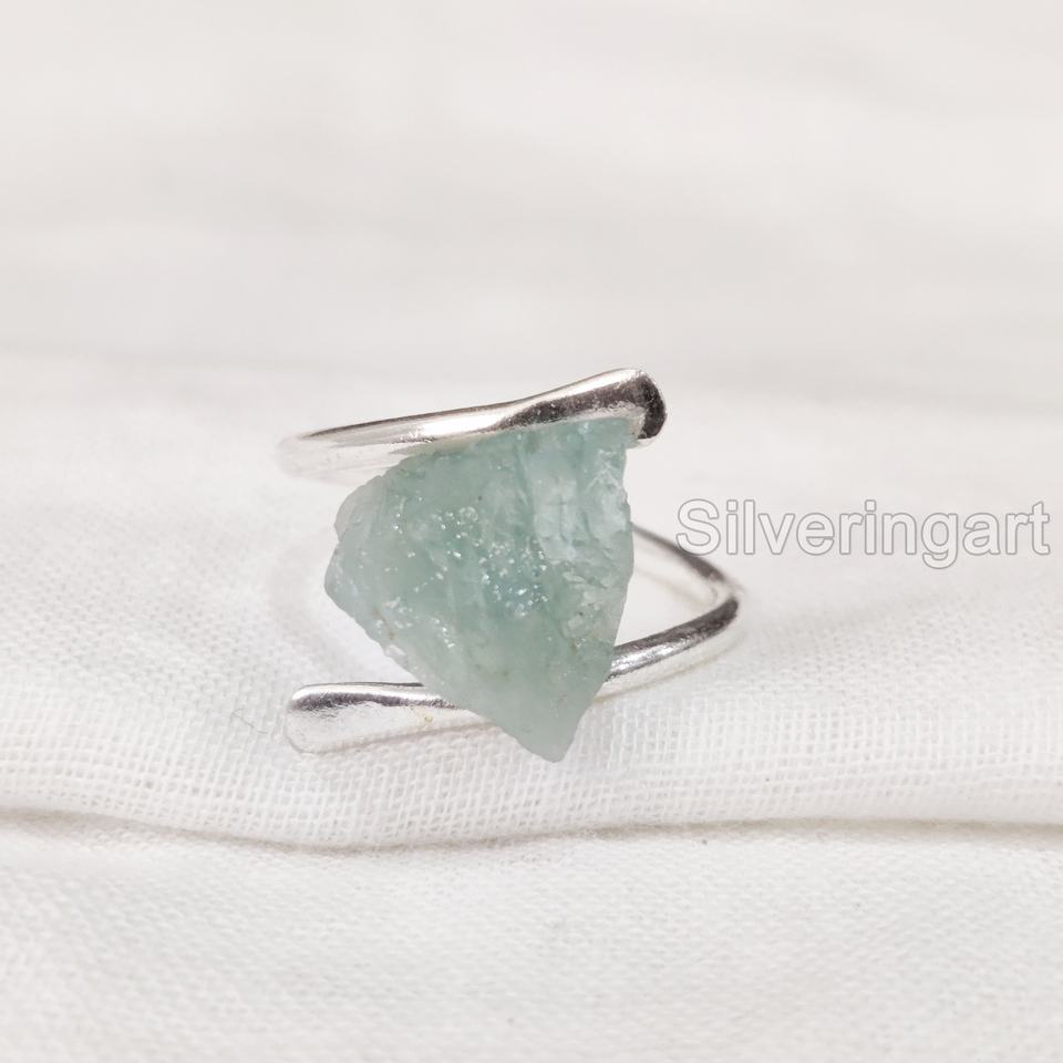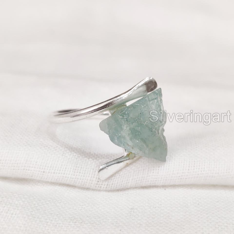 Rough Stone Jewelry Women's Ring Natural Aquamarine Raw Gemstone March Birthstone Cross Ring Jewelry 925 Sterling Silver Ring
