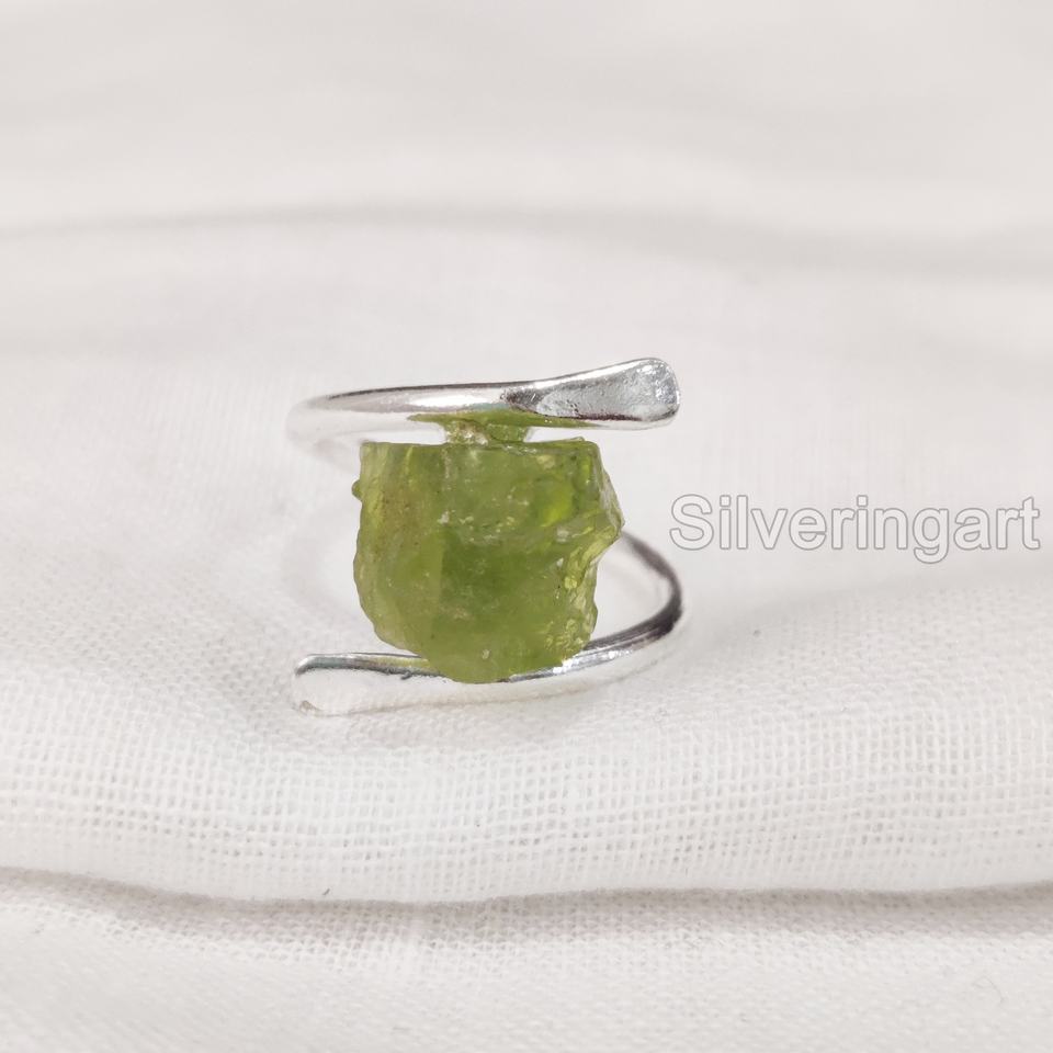 Rough Stone Jewelry Women's Ring Natural Raw Peridot Gemstone August Birthstone Cross Band Jewelry 925 Sterling Silver Ring