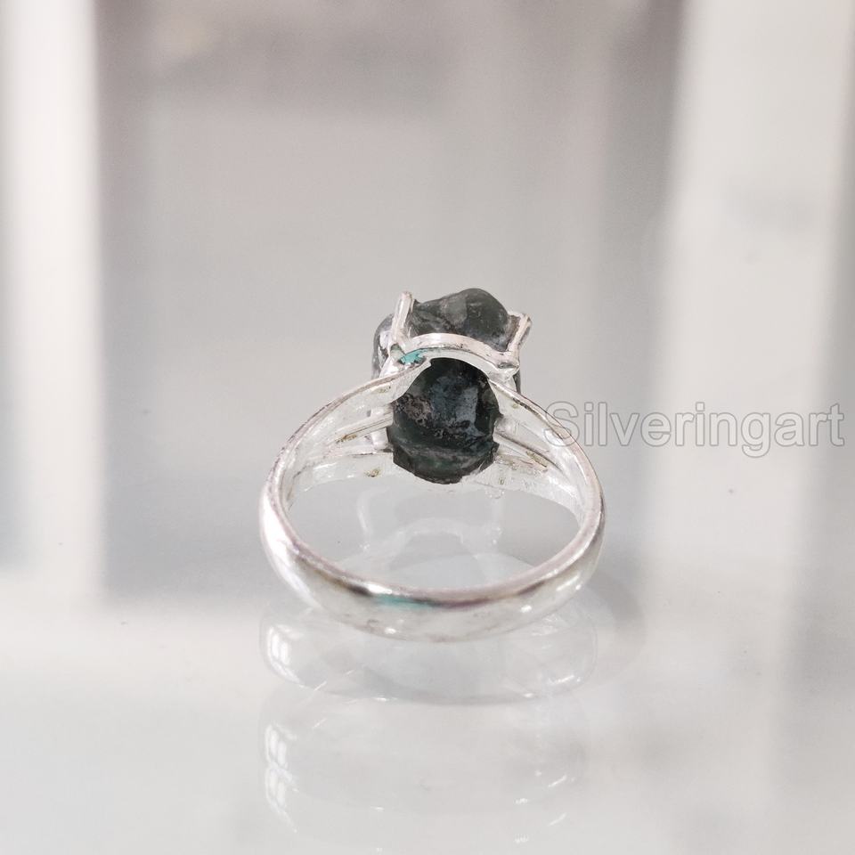 Rough Stone Jewelry Women's Ring Natural Emerald Raw Gemstone May Birthstone Boho Gypsy Ring Christmas 925 Sterling Silver Ring
