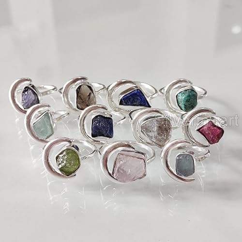 Rough Stone Jewelry Womens Ring Natural Moonstone Labradorite Garnet Citrine Gemstone Statement Jewelry 925 Sterling Silver Ring