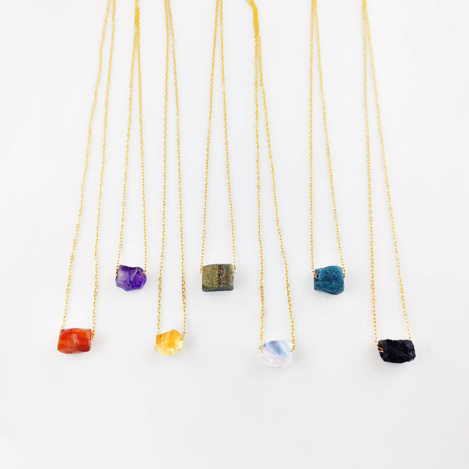 Keyword:Raw Gemstone Necklace, Crystal Necklace, Drilled Stone Necklace