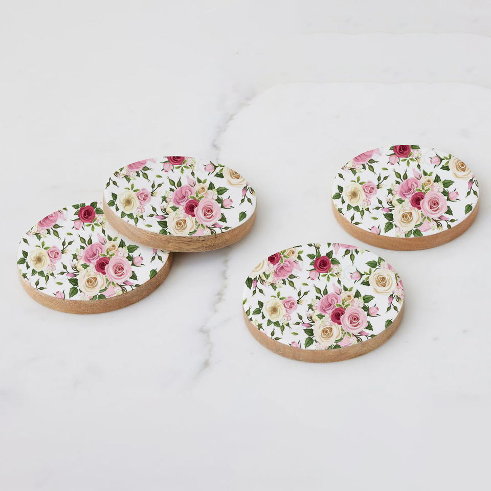 Elegant Customizable Acacia Free Wood Wedding Coasters Classic Enamel Printed Drink Coasters Holder for Tea Parties Direct