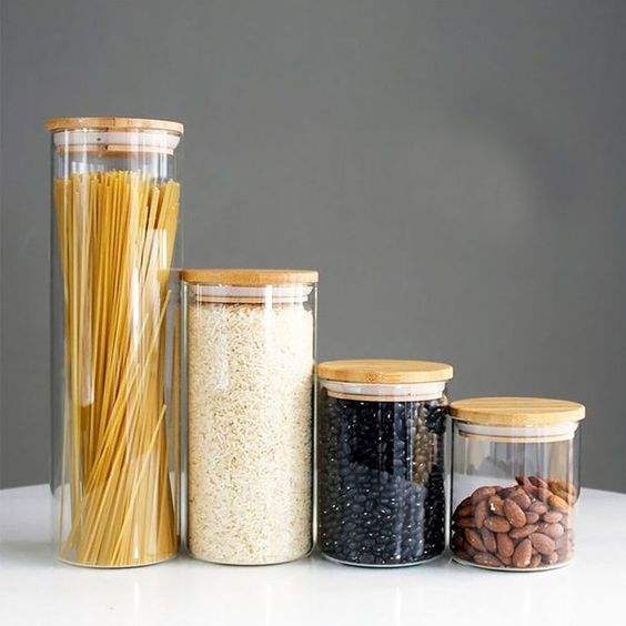 Round Airtight Coffee Tea Spice Glass Jar Kitchen Organizer Storage Bottles Sealed Glass Food Storage Jars with Bamboo Lid(set4)