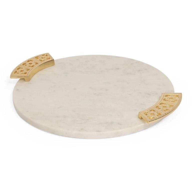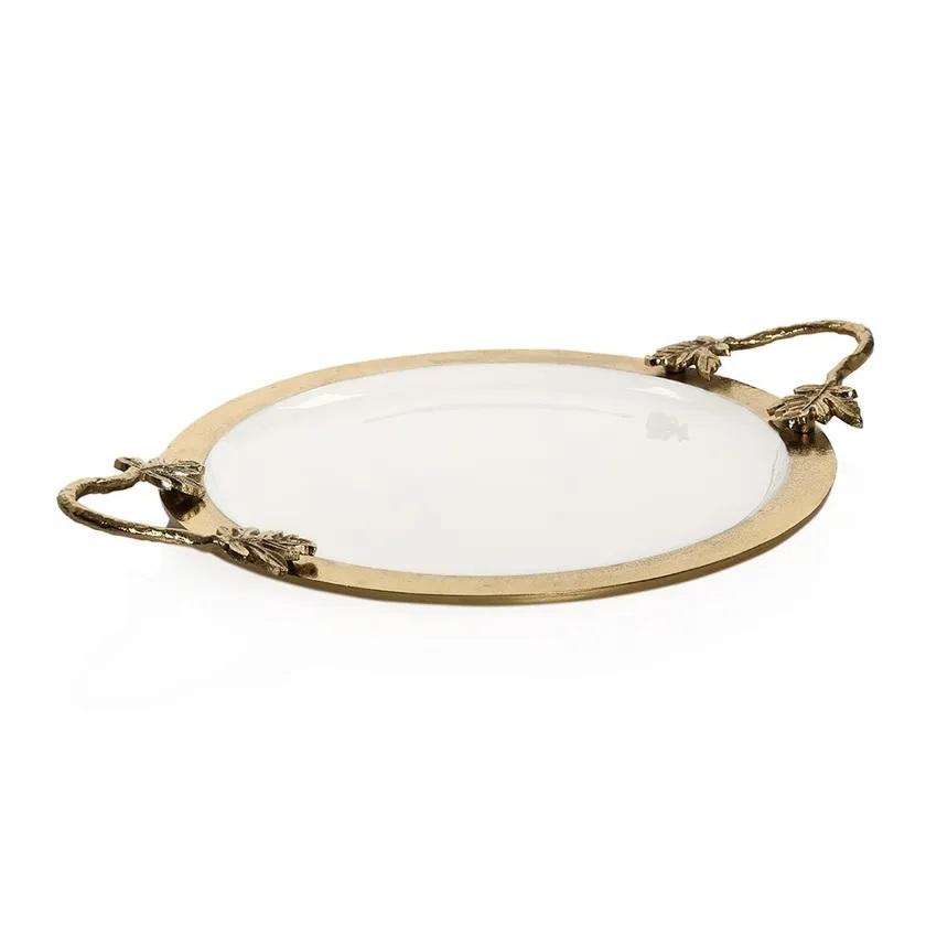 Round Aluminum Enamel Tray Top Quality Handmade Dessert Tray Cupcake & Candies Serving Tray Leaf Design Handles