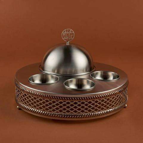 Round Arabic Dinnerware Metal Food Warmer White Finished Designer New Casserole Round Shape Luxury Wholesale Metal Hotpot