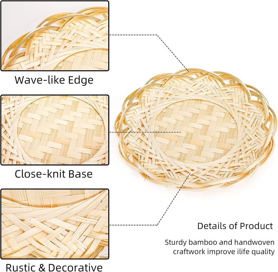Round Bamboo Woven Serving Basket | Eco-Friendly Restaurant Food Display Plate for Kitchen & Picnic