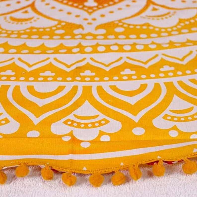 Round Beach Throw Ombre Hippie Mandala Yellow Red Indian Bedspread With Yellow Tassel Yoga Mat Made of Cotton for Meditation OEM