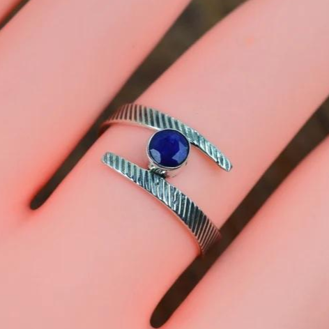 Round Blue Sapphire Gemstone Ring 925 Sterling Silver Handmade Jewelry September Birthstone Gift For Women Daily Wear Wholesale