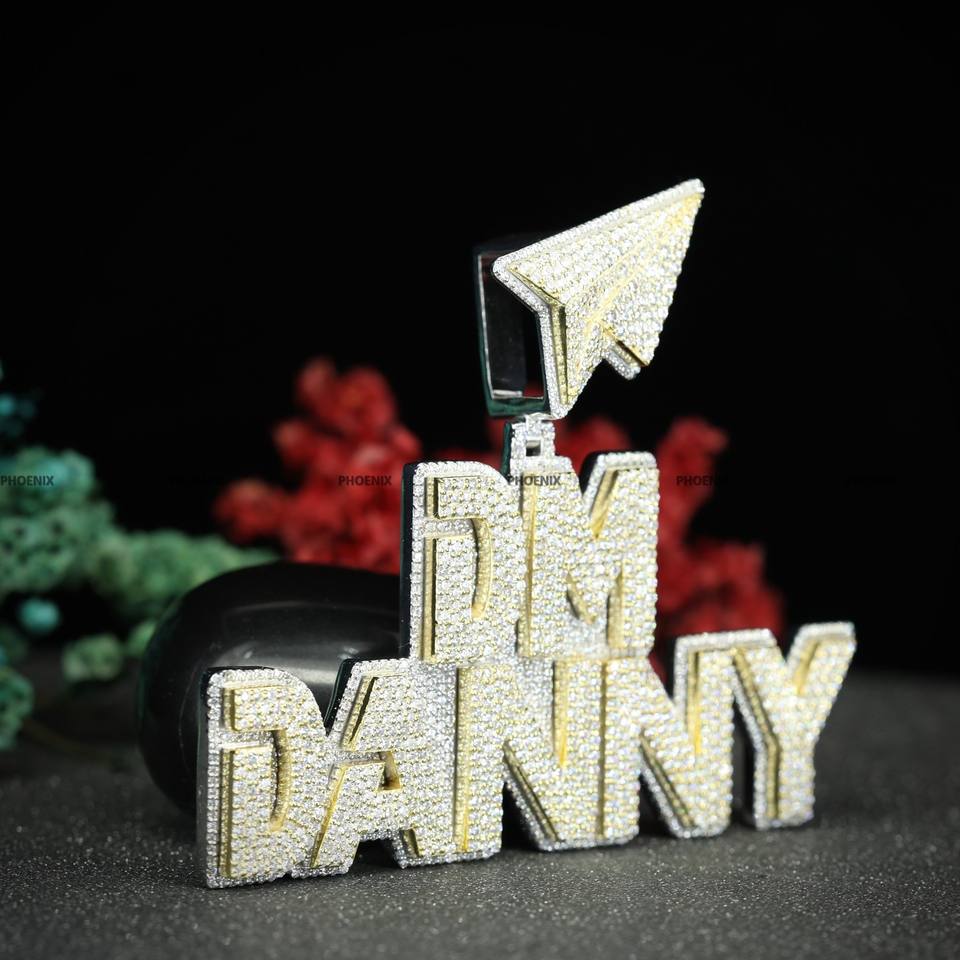 Round Brilliant Cut Custom 925 Silver Name Pendant Double Layer Two Tone Wedding Pendant for Men & Women by Phoenix Enterpridr