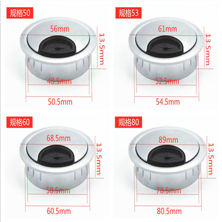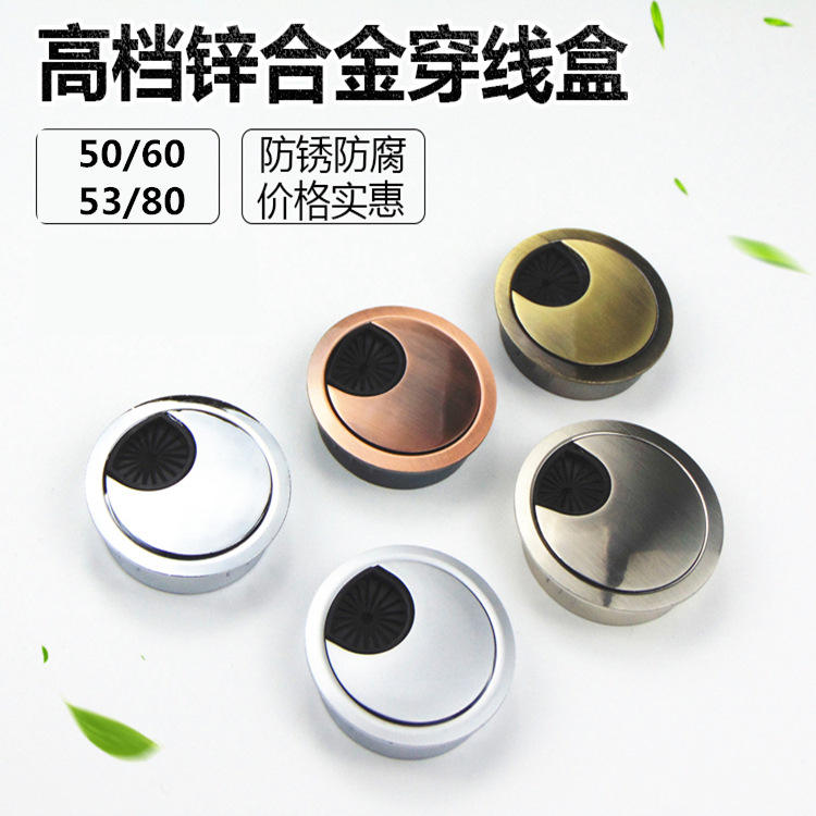 Round Cable Management Box Zinc Alloy Desk Hole Cover 35 50 53 60 80mm Office Organizer